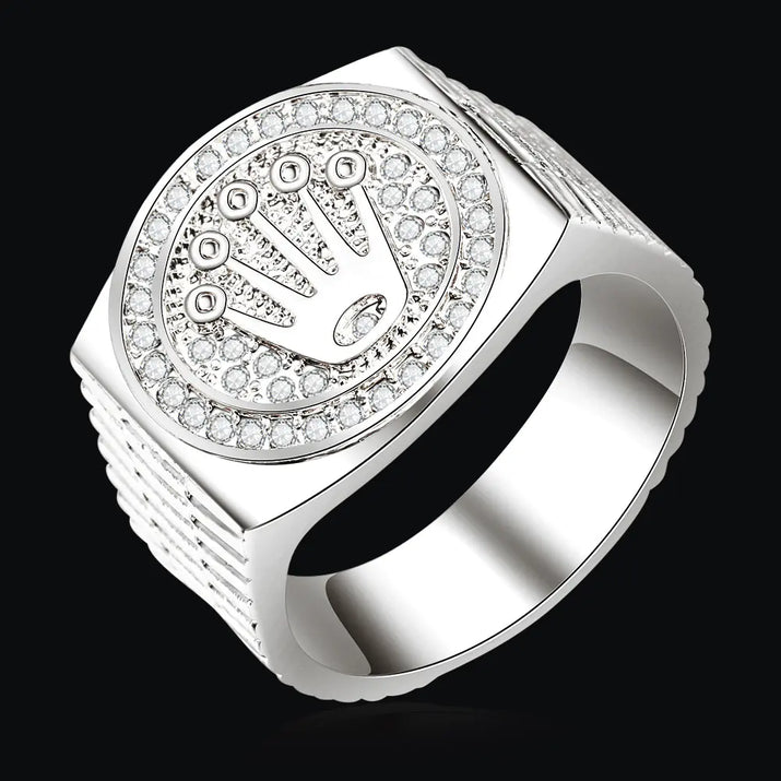 Answer 3: Yes, the ring features a stylish crown design that is versatile and designed for both men and women, making it the perfect accessory to enhance any outfit for any occasion.